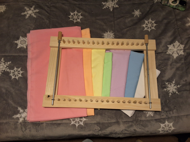 upcycled fabric strips. All Materials will be provided and you will keep the loom when you are finished.
